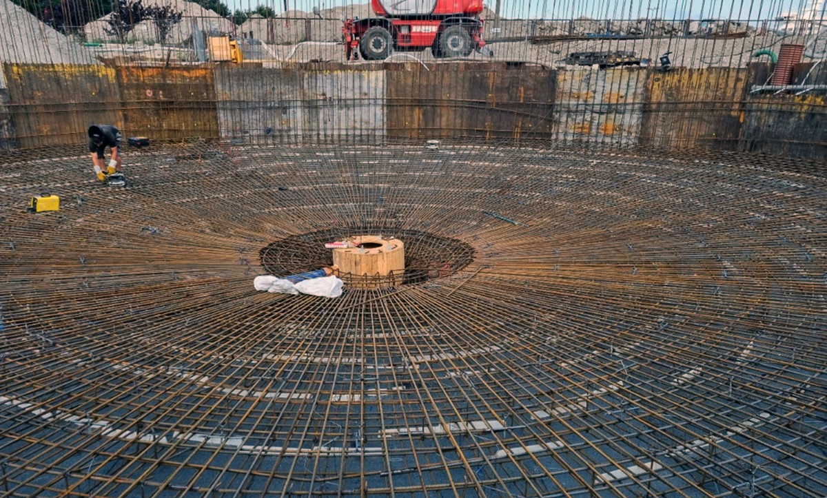 - wykonanie monolitycznych płyt fundamentowych dla obu zbiorników o średnicy wewnętrznej 18 metrów,